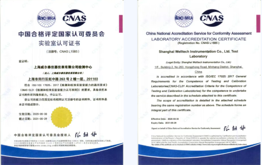 值得一提的是,上海威爾泰儀器儀表有限公司檢測中心具有 CNAS(中國合格評定國家認(rèn)可委員會)認(rèn)可證書,這標(biāo)志著其檢測能力、管理水平及檢測結(jié)果的準(zhǔn)確性、可靠性均達(dá)到國家與國際認(rèn)可標(biāo)準(zhǔn)。