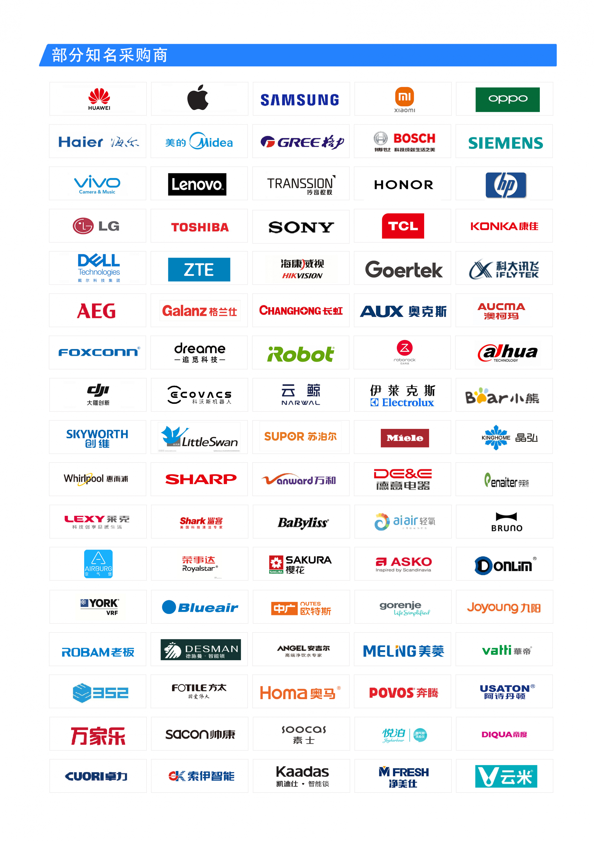 5.部分VIP觀眾和采購(gòu)商:海爾、美的、格力、華為、蘋果、小米、OPPO、海信、TCL、康佳、聯(lián)想、榮耀、VIVO、大疆、長(zhǎng)虹、創(chuàng)維、奧克斯、博世、西門子、松下電器、東芝、三星、LG、榮事達(dá)、格蘭仕、美菱、澳柯瑪、小天鵝、美大、方太、老板、華帝、帥康、櫻花廚衛(wèi)、阿里斯頓、林內(nèi)、蘇泊爾、九陽(yáng)、萬(wàn)和、萬(wàn)家樂(lè)、AO史密斯、云米、萊克、愛(ài)仕達(dá)、艾美特、伊萊克斯、伊萊特、小熊電器、安吉爾、凈美仕、阿詩(shī)丹頓、布魯雅爾、亞都、戴森、綠島風(fēng)、科沃斯、云鯨、石頭科技、追覓、一點(diǎn)、曉舞、艾羅伯特等;