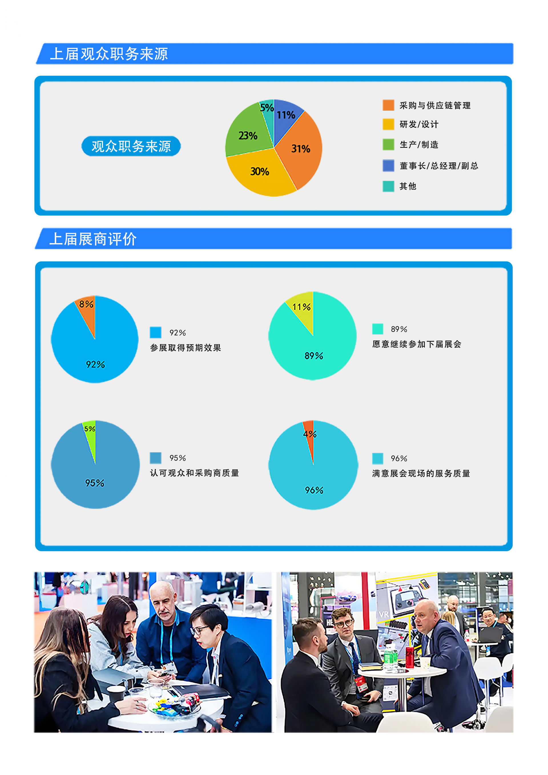 3.觀眾的職務:70%來自董事長、總經(jīng)理、副總經(jīng)理、總工程師、部門經(jīng)理、采購經(jīng)理、技術員、設計師、研發(fā)人員;其他職務占比30%。