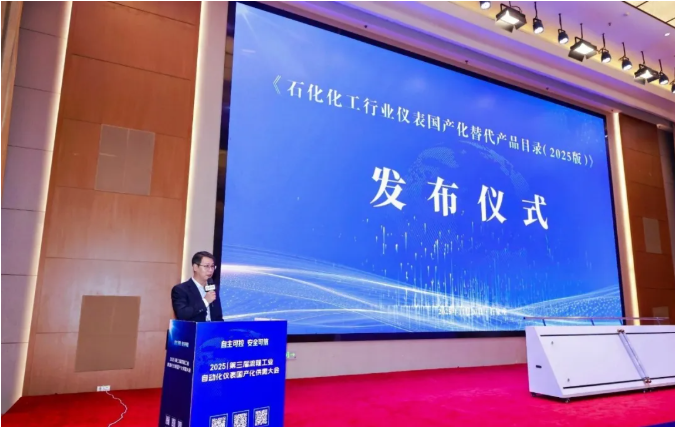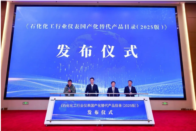 2025 年 11 月 21 日,由中國機電一體化技術(shù)應(yīng)用協(xié)會流程工業(yè)分會與中能數(shù)智安科工程技術(shù)研究院聯(lián)合編制的《石化化工行業(yè)儀表國產(chǎn)化替代產(chǎn)品目錄(2025 版)》(以下簡稱《目錄》)發(fā)布儀式在石家莊隆重舉行。中國機電一體化技術(shù)應(yīng)用協(xié)會榮譽會長李亞平、常務(wù)副會長王繼宏、中國機電一體化技術(shù)應(yīng)用協(xié)會流程工業(yè)分會理事長/中石油集團管理專家趙峻松、中國機電一體化技術(shù)應(yīng)用協(xié)會流程工業(yè)分會常務(wù)副理事長/中石油集團公司高級專家/中石油華東設(shè)計院副總工程師林洪俊共同為《目錄》揭幕,見證這一推動產(chǎn)業(yè)自主可控的重要時刻。
