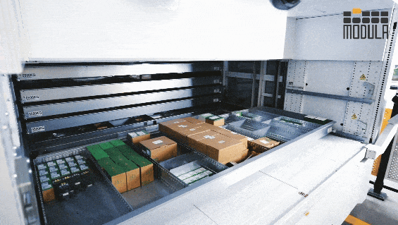 Modula智能升降貨柜被部署在生產(chǎn)中樞位置,專門管理那些高頻使用而數(shù)量繁雜的零部件,比如緊固件、門窗連接件、電控單元、小型五金件和工裝夾具。