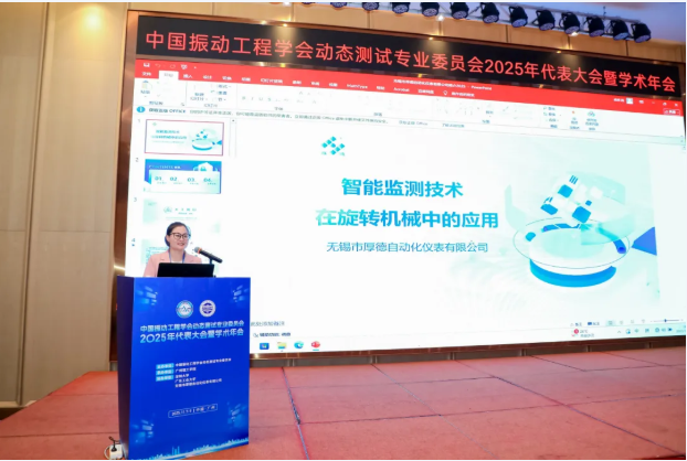 會議期間,我公司副總經(jīng)理葉華美作專題報(bào)告,重點(diǎn)介紹了《智能監(jiān)測技術(shù)在旋轉(zhuǎn)機(jī)械中的應(yīng)用》。她結(jié)合厚德儀表的實(shí)戰(zhàn)案例,闡述了如何通過智能傳感與數(shù)據(jù)分析技術(shù),為旋轉(zhuǎn)機(jī)械實(shí)現(xiàn)預(yù)測性維護(hù)與安全增效,獲得了在場專家的廣泛關(guān)注與交流。