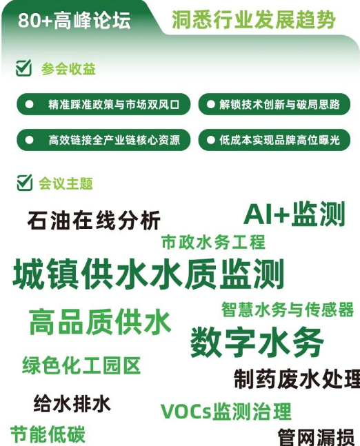 2026 上海儀器儀表展不僅是產(chǎn)品展示的舞臺(tái),更將為企業(yè)量身打造「政策解碼+技術(shù)破局+資源變現(xiàn)」的一站式賦能平臺(tái)。展會(huì)攜世環(huán)會(huì)系列展同期推出80余場(chǎng)高規(guī)格行業(yè)論壇,集結(jié)1000+行業(yè)專家、技術(shù)領(lǐng)軍者與采購決策人,聚焦供水水質(zhì)監(jiān)測(cè)、石油化工智能監(jiān)測(cè)、數(shù)字水務(wù)創(chuàng)新、AI+智慧監(jiān)測(cè)、VOCs治理等核心熱點(diǎn),為企業(yè)帶來實(shí)打?qū)嵉膬r(jià)值增益。