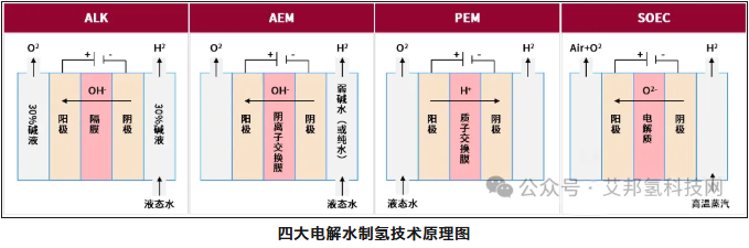 當(dāng)前主流的電解水制氫技術(shù)包括堿性水電解(ALK)、質(zhì)子交換膜電解(PEM)、高溫固體氧化物電解(SOEC)陰離子交換膜電解(AEM)四種,此外近兩年海水電解制氫也不斷獲得成果突破。