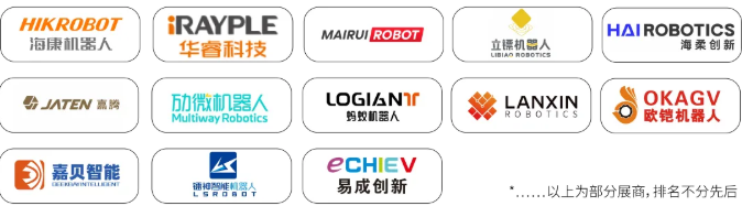 海康機器人、華??萍?、立鏢機器人、邁睿機器人、海柔創(chuàng)新、嘉騰機器人、勱微機器人、藍芯科技、鐳神智能機器人、歐鎧機器人、螞蟻機器人、嘉貝智能、易成創(chuàng)新……