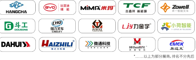杭叉、比亞迪、搬易通、卓一叉車、吉鑫祥、儲力叉車、天宇、斗工、宇捷智能、小荷智能、虎翼智能、海之力、易邁克、大匯智能、微通智能科技……