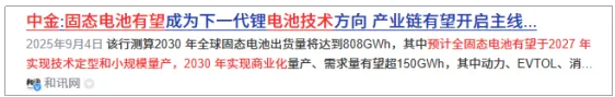 中金公司預計,全固態(tài)電池有望于2027年實現(xiàn)技術定型和小規(guī)模量產(chǎn),2030年實現(xiàn)商業(yè)化量產(chǎn),需求量有望超150GWh。