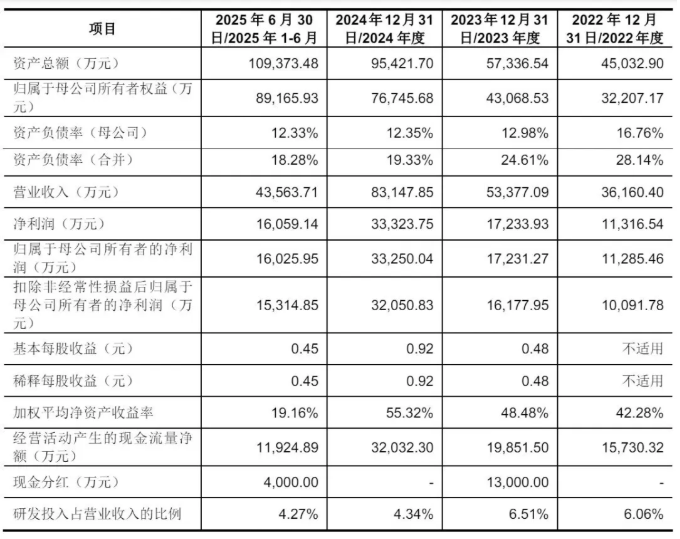 業(yè)績(jī)方面,報(bào)告期(2022年至2024年、2025年上半年)各期,三瑞智能分別實(shí)現(xiàn)營(yíng)收3.62億元、5.34億元、8.31億元、4.36億元;歸母凈利潤(rùn)1.13億元、1.72億元、3.33億元、1.6億元。