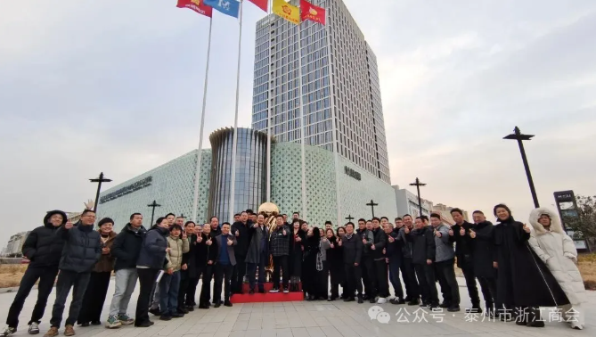 會后,全體理事移步至商會一樓廣場,共同為戶外“蘇超”冠軍復(fù)刻獎杯落成揭幕并合影留念。這座象征拼搏與榮譽的獎杯,不僅展現(xiàn)了浙商積極參與泰州體育事業(yè)的精神風(fēng)貌,也為城市體育文化景觀增添了一道亮麗風(fēng)景。