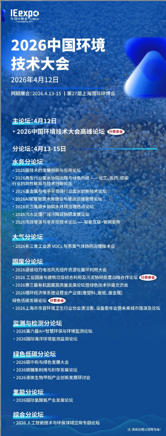 作為“十五五”首年規(guī)格最高、規(guī)模最大的行業(yè)思想盛宴與資源對(duì)接平臺(tái)——2026中國(guó)環(huán)境技術(shù)大會(huì)將于4月12-15日重磅啟幕。這不僅是一場(chǎng)會(huì)議,更是您洞察未來五年趨勢(shì)、搶占綠色新賽道的戰(zhàn)略窗口。