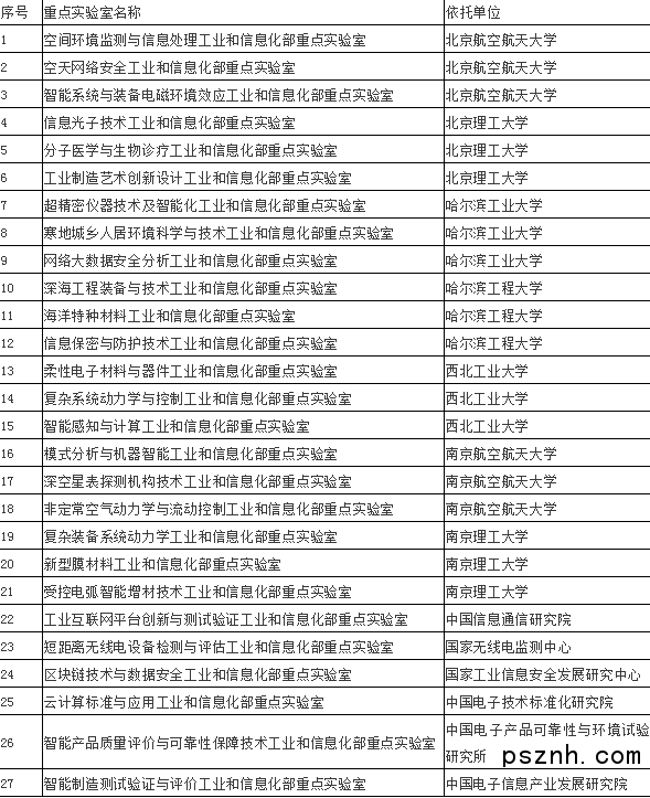 2018年工業(yè)和信息化部重點(diǎn)實(shí)驗(yàn)室擬認(rèn)定名單