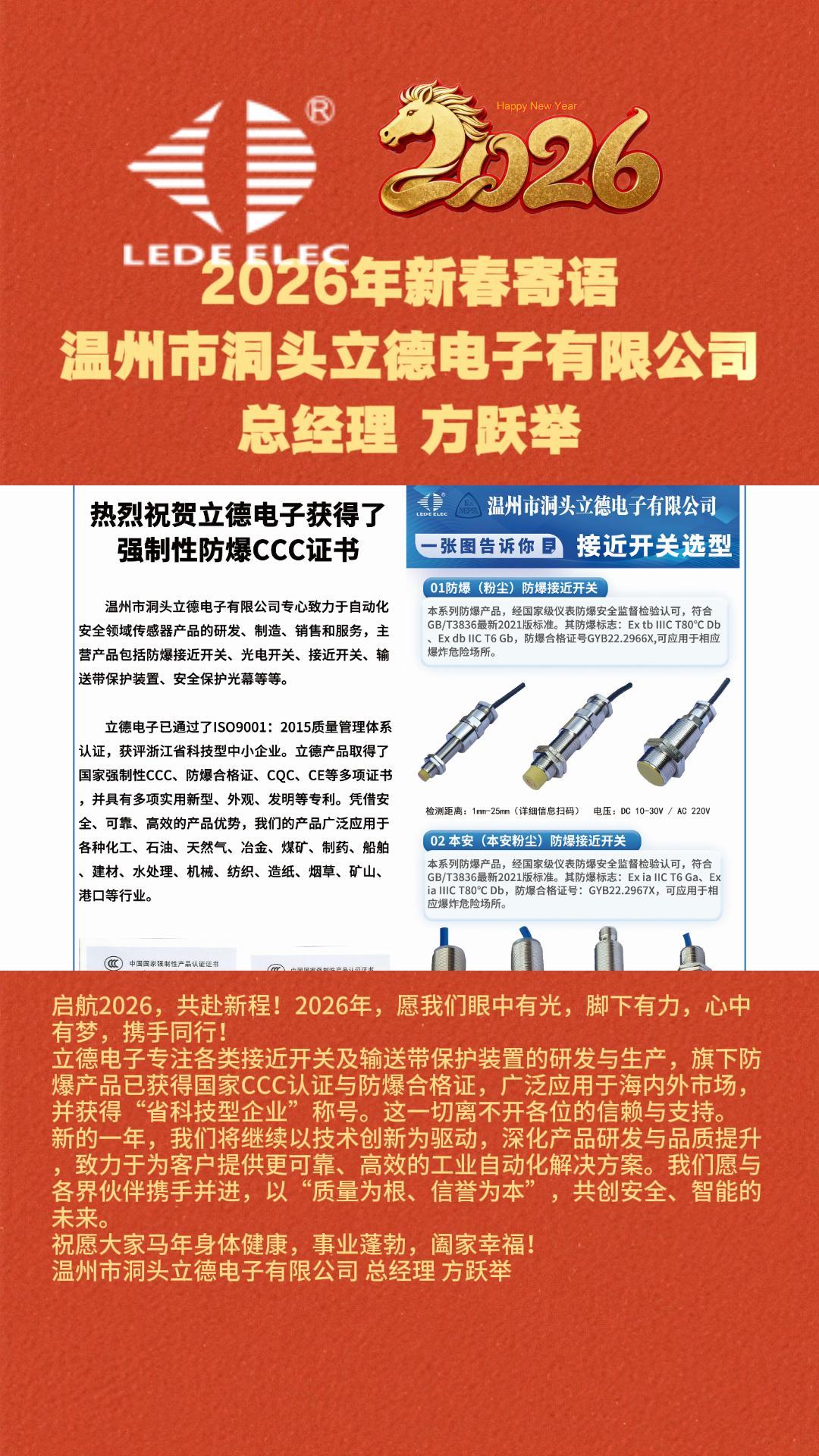 溫州市洞頭立德電子有限公司 總經(jīng)理 方躍舉2026年新春寄語(yǔ)
