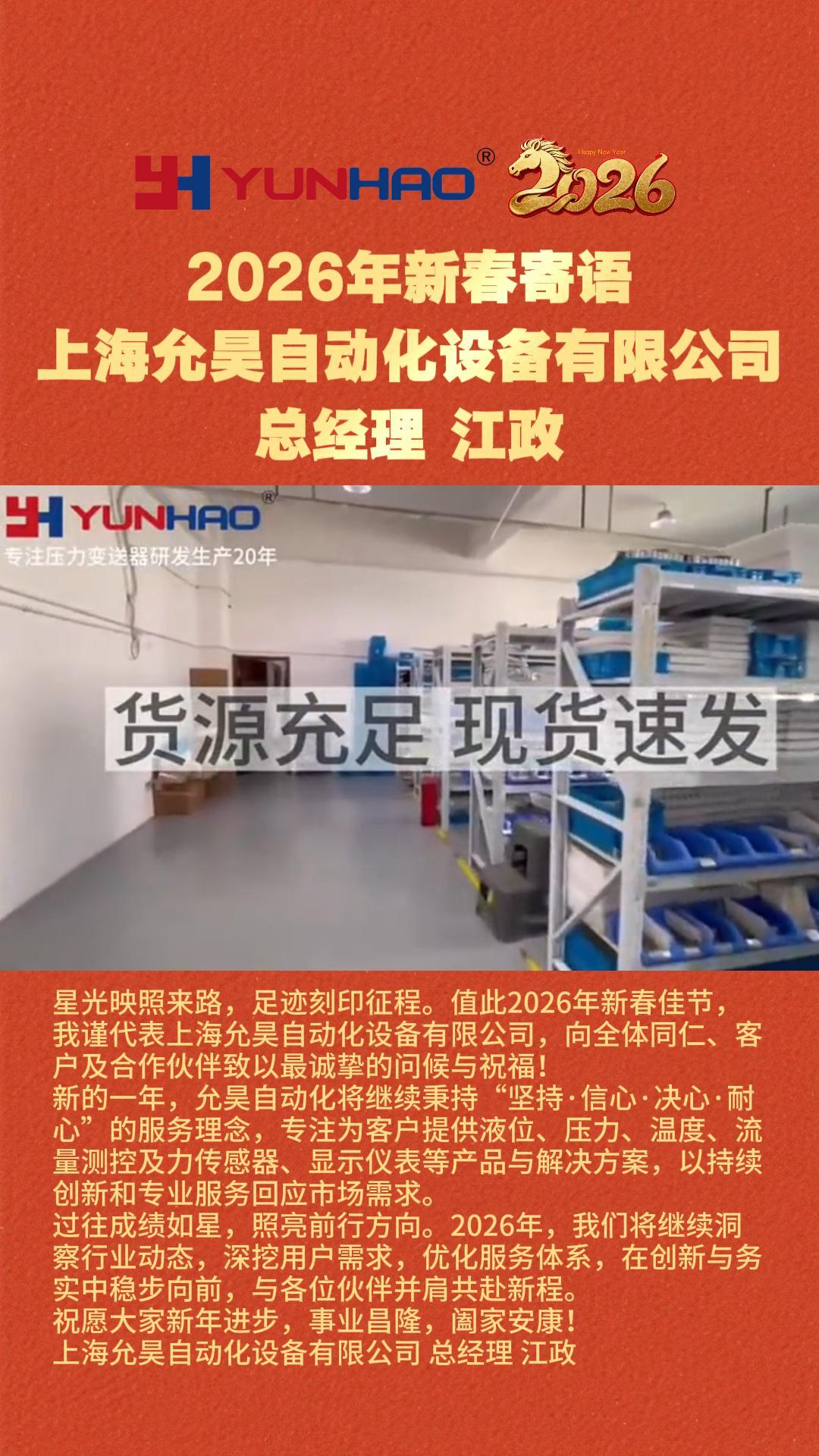 上海允昊自動化設備有限公司 總經(jīng)理:江政2026年新春寄語