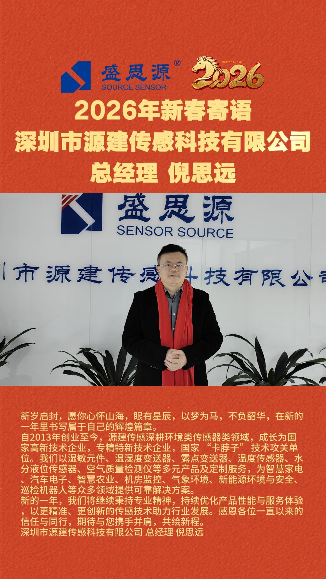 深圳市源建傳感科技有限公司 總經(jīng)理 倪思遠(yuǎn)2026年新春寄語
