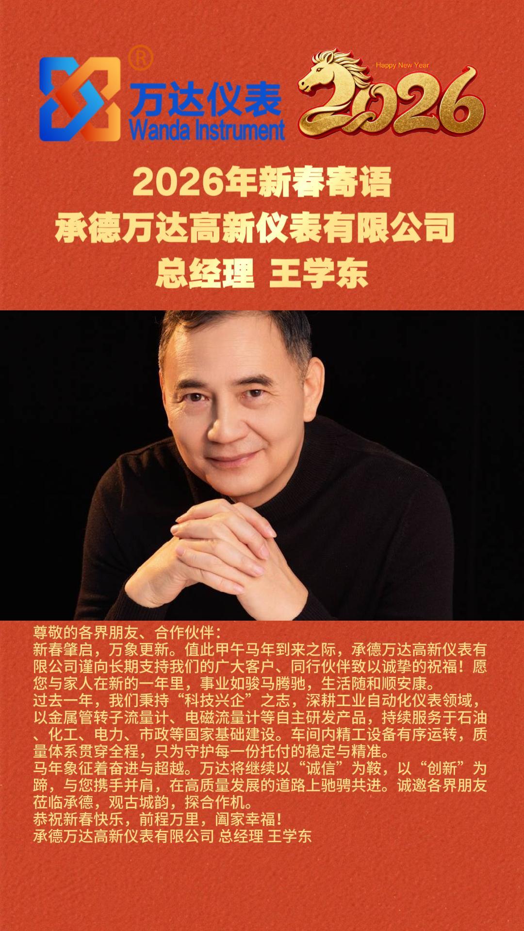 承德萬(wàn)達(dá)高新儀表有限公司 總經(jīng)理 王學(xué)東2026年新春寄語(yǔ)