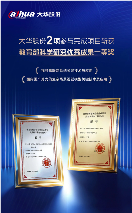 近日,2025 年度教育部科學研究優(yōu)秀成果獎(自然科學和工程技術)獲獎名單正式揭曉。大華股份參與完成的“面向國產算力的復雜場景視覺模型關鍵技術及應用”、“視頻物聯網系統(tǒng)關鍵技術與應用”兩個項目,雙雙斬獲工程技術研究成果獎一等獎。