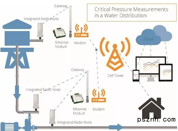 通過遠(yuǎn)程傳感器控制系統(tǒng),操作員無需爬上水塔或前往不同地方讀取壓力傳感器監(jiān)測儀表,信息會直接輸入到計(jì)算機(jī)進(jìn)行分析。然而,供水系統(tǒng)的運(yùn)行環(huán)境卻不利于有線監(jiān)測系統(tǒng)的實(shí)施。