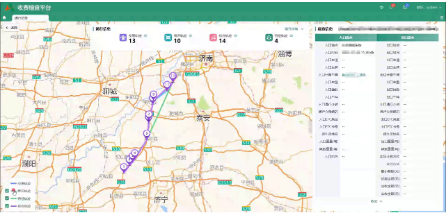 齊魯高速將稽核系統(tǒng)與一線稽查工作深度耦合,基于大數(shù)據(jù)能力將車輛特征、交易流水、牌識(shí)數(shù)據(jù)“三流合一”,通過(guò)三類數(shù)據(jù)的精準(zhǔn)關(guān)聯(lián)與交叉驗(yàn)證,完整還原車輛真實(shí)行駛路徑,破解跨區(qū)域行程核查難、違規(guī)證據(jù)鏈不完整等難點(diǎn)。針對(duì)U/J型行駛、套牌換牌、假冒綠通等十余類高頻違規(guī)場(chǎng)景,系統(tǒng)構(gòu)建了專屬智能稽核模型,自動(dòng)判定與秒級(jí)預(yù)警異常通行行為,形成針對(duì)性數(shù)字化處理預(yù)案。