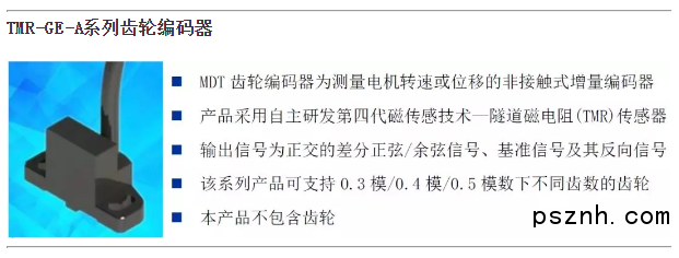 中國(guó)張家港2018年6月17日電 -- 專業(yè)的隧道磁阻(TMR)傳感器領(lǐng)先供應(yīng)商江蘇多維科技有限公司(MultiDimension Technology Co., Ltd., MDT)日前推出正弦/余弦輸出信號(hào)的高精度TMR齒輪編碼器TMR-GE-A系列。該系列產(chǎn)品包括TMR-GE-A-03、TMR-GE-A-04和TMR-GE-A-05非接觸式增量磁編碼器,分別應(yīng)用于0.3、0.4和0.5模數(shù)的齒輪,輸出信號(hào)為高質(zhì)量的1Vpp差分弦波信號(hào),適用于數(shù)控機(jī)床、能源和發(fā)電系統(tǒng)、鐵路交通和電梯等需要對(duì)電機(jī)轉(zhuǎn)速和位移進(jìn)行精準(zhǔn)測(cè)量的多種工業(yè)應(yīng)用。