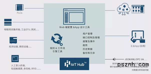 如果將工業(yè)互聯(lián)網(wǎng)平臺(tái)看做是一個(gè)分布式的計(jì)算平臺(tái),需要針對(duì)各種系統(tǒng)匯集而來(lái)的數(shù)據(jù)進(jìn)行分析,提供相應(yīng)服務(wù)。那么IoT Hub™則為這個(gè)計(jì)算平臺(tái)搭建了一個(gè)“數(shù)據(jù)云梯”,以此來(lái)完成數(shù)據(jù)上上下下的運(yùn)載,促進(jìn)IT與OT的深度融合,從而豐富工業(yè)互聯(lián)網(wǎng)平臺(tái)的應(yīng)用。
