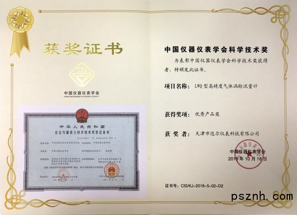 迅爾儀表在此次評(píng)選中,獲得了2018年中國(guó)儀器儀表學(xué)會(huì)科學(xué)技術(shù)優(yōu)秀產(chǎn)品獎(jiǎng):LWQ型高精度氣體渦輪流量計(jì)。