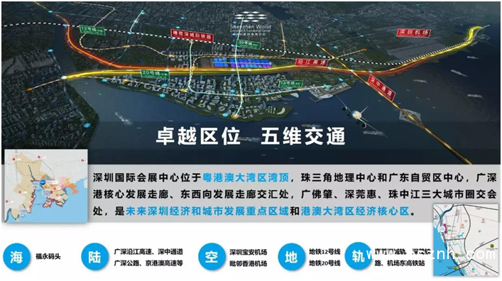 從區(qū)位上看,深圳國(guó)際會(huì)展中心地處粵港澳大灣區(qū)灣頂,廣佛肇、深莞惠、珠中江三大城市圈交會(huì)處,廣深港核心發(fā)展走廊、東西向發(fā)展走廊交會(huì)處,緊挨廣深沿江高速,毗鄰空港、軌道等交通樞紐,區(qū)位交通極其便利。