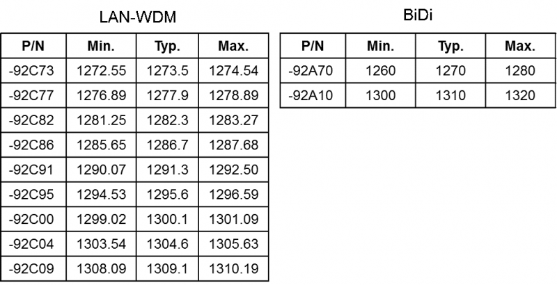 而25G LAN-WDM EML TOCAN ML760B54-92x應(yīng)用于40公里以內(nèi)的5G無(wú)線網(wǎng)絡(luò),溫度范圍 達(dá)到-40℃~+95℃;可用25.8Gbps NRZ 調(diào)制;其出光功率和消光比分別為0 to +5dBm、 >+5dB;TEC功耗0.5W(標(biāo)準(zhǔn)值),工作溫度為 -40℃~+95℃。