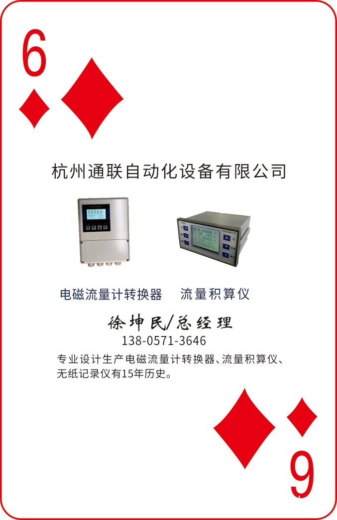 《2020圖頁儀表行業(yè)撲克牌》推出就得到 杭州通聯(lián)自動化設備有限公司總經(jīng)理徐坤民的認同和支持,徐總通聯(lián)自動化積極認領(lǐng)了方塊6做為此次的公司的專屬牌!