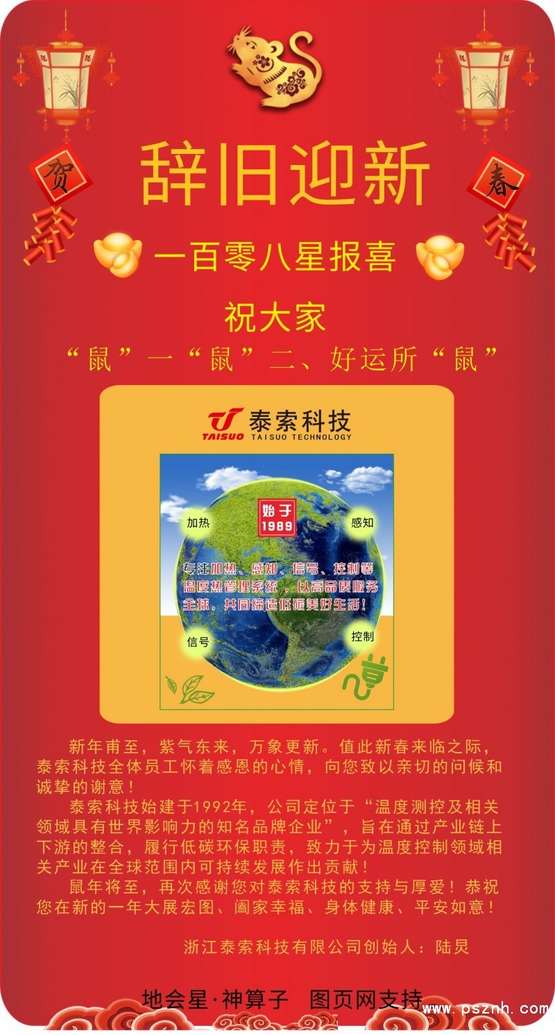 鼠年將至,再次感謝您對(duì)泰索科技的支持與厚愛(ài)!恭祝您在新的一年大展宏圖、闔家幸福、身體健康、平安如意!