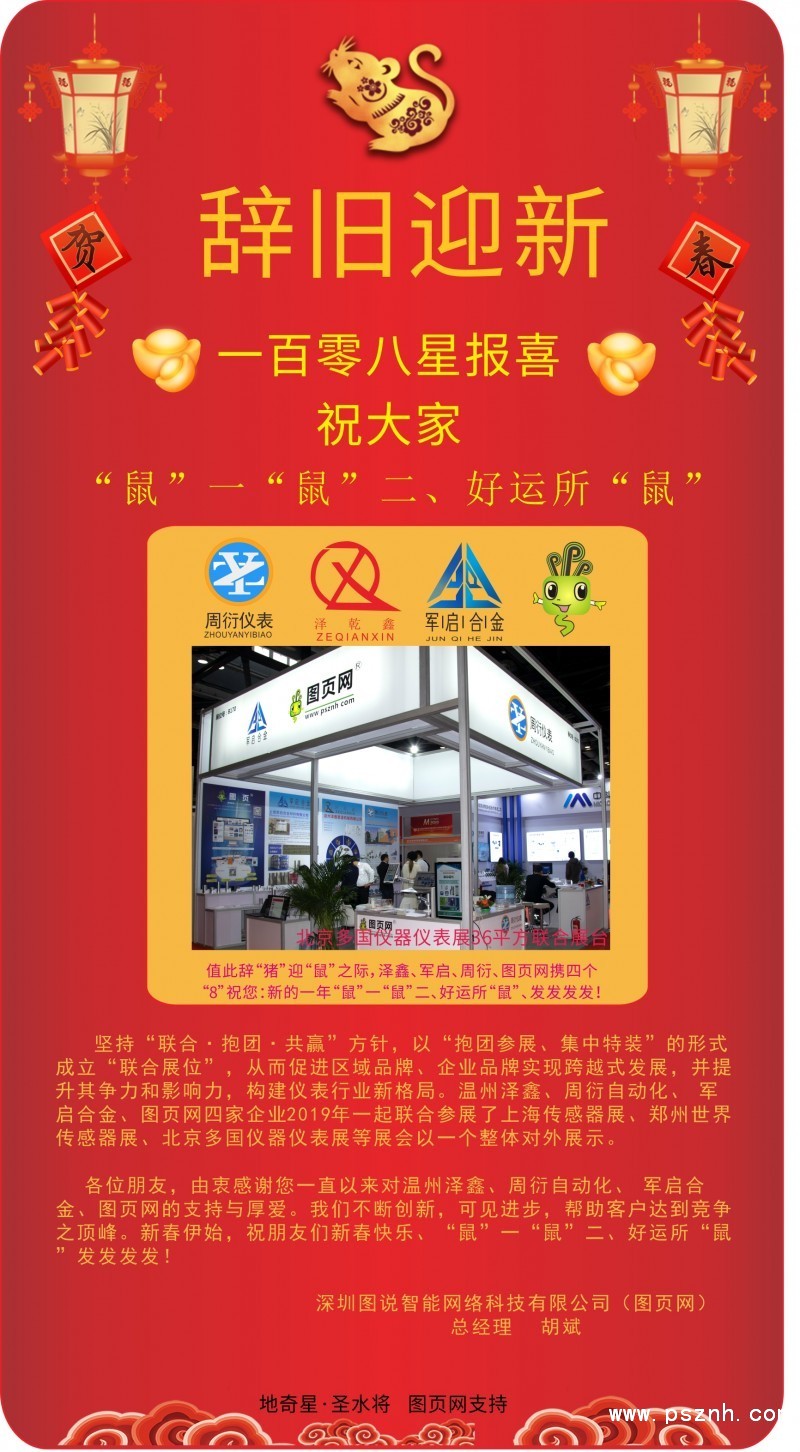 各位朋友,由衷感謝您一直以來(lái)對(duì)溫州澤鑫、周衍自動(dòng)化、 軍啟合金、圖頁(yè)網(wǎng)的支持與厚愛(ài)。我們不斷創(chuàng)新,可見(jiàn)進(jìn)步,幫助客戶達(dá)到競(jìng)爭(zhēng)之頂峰。新春伊始,祝朋友們新春快樂(lè)、“鼠”一“鼠”二、好運(yùn)所“鼠 ”發(fā)發(fā)發(fā)發(fā)!