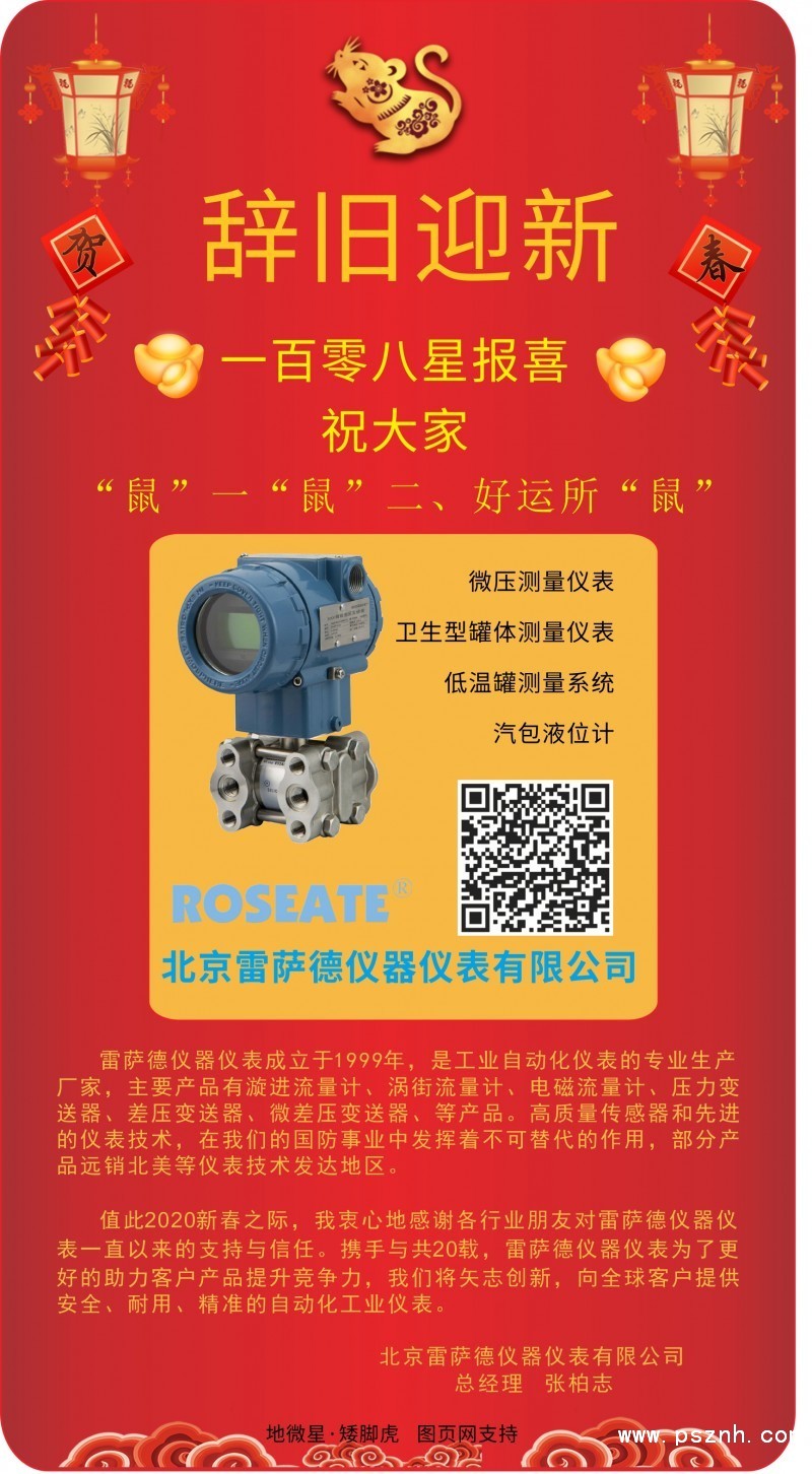 值此2020新春之際,我衷心地感謝各行業(yè)朋友對雷薩德儀器儀表一直以來的支持與信任。攜手與共20載,雷薩德儀器儀表為了更好的助力客戶產(chǎn)品提升競爭力,我們將矢志創(chuàng)新,向全球客戶提供安全、耐用、精準(zhǔn)的自動(dòng)化工業(yè)儀表。