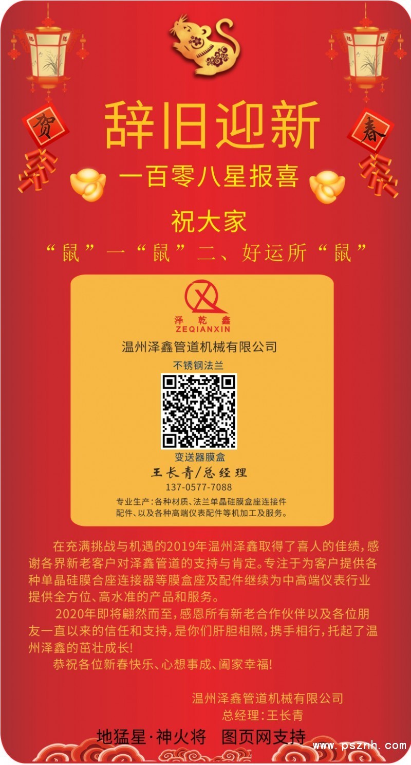 溫州澤鑫管道機(jī)械總經(jīng)理:王長(zhǎng)青2020新春寄語 一百零八星報(bào)喜之地猛星
