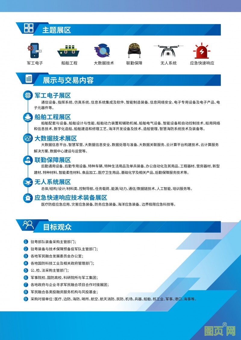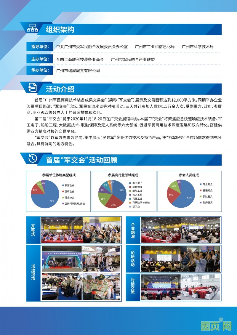 第二屆“軍交會”將于2020年11月18-20日在廣交會展館舉辦。本屆“軍交會”將聚焦應急快速響應技術裝備、軍工電子、船舶工程、大數(shù)據(jù)技術、聯(lián)勤保障及無人系統(tǒng)等六大領域,促進軍民兩用技術深度發(fā)展和雙向轉化,搭建供需雙方精準對接的交易平臺。“軍交會”以軍方需求為導向,集中展示“民參軍”企業(yè)優(yōu)勢技術及特色產(chǎn)品,使“為軍服務”與市場需求得到充分融合,具有鮮明的地方特色。
