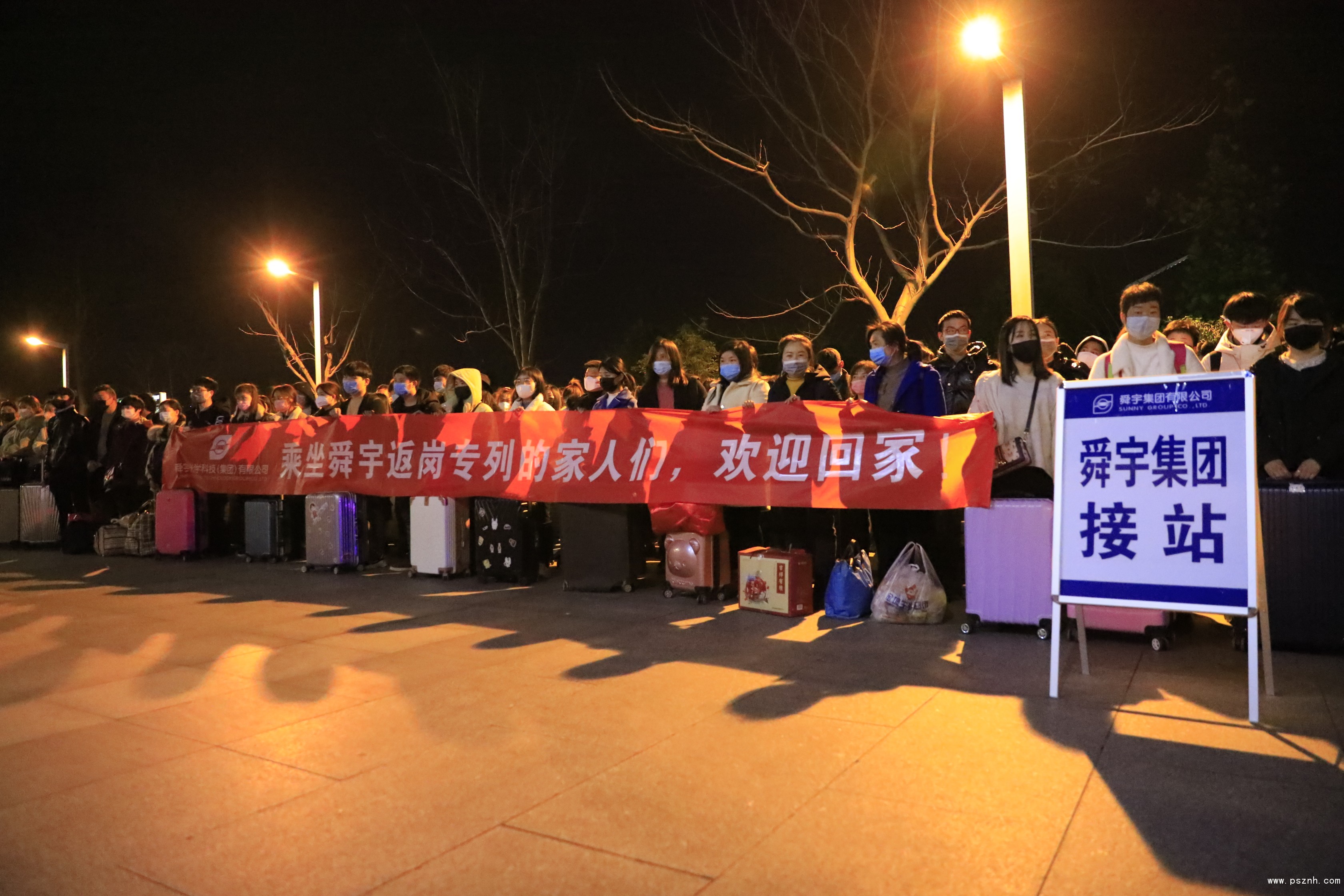 “乘坐舜宇返崗專列的家人們,歡迎回家。”2020年2月18日晚,高鐵余姚北站和寧波站接站口,迎接舜宇員工的橫幅格外鮮亮。三輛搭載著舜宇職工的“員工專列”先后抵達,近300名來自周口、阜陽、成都、貴州、南昌、上饒等地區(qū)的舜宇員工及其親屬友人在政府及公司工作人員的引導下,井然有序地出站。