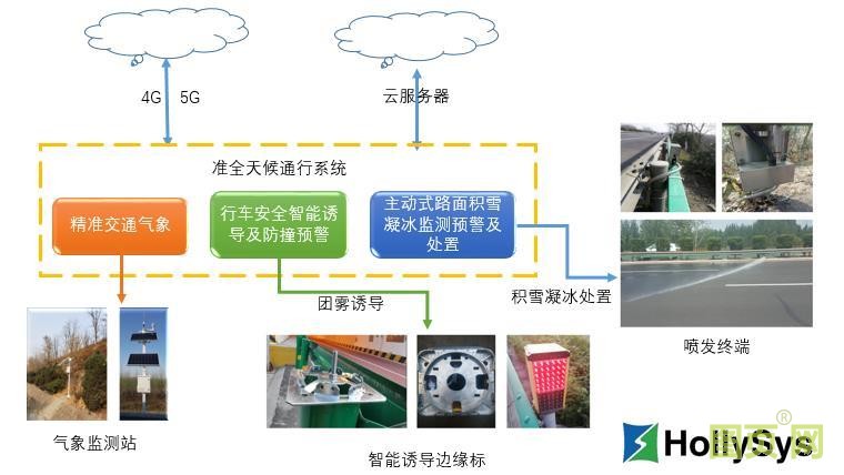 和利時準(zhǔn)全天候通行系統(tǒng)由精準(zhǔn)交通氣象、行車安全智能誘導(dǎo)及防撞預(yù)警以及主動式路面積雪凝冰監(jiān)測預(yù)警及處置三部分組成,綜合運(yùn)用雷達(dá)回波、衛(wèi)星云圖、WRF模型打造技術(shù)領(lǐng)先的和利時三位一體準(zhǔn)全天候通行系統(tǒng),為高速公路提供“公里級預(yù)報,分鐘級預(yù)警”氣象服務(wù),為制定氣象應(yīng)急措施提供精細(xì)支撐,對高速公路氣象進(jìn)行全面監(jiān)測和安全處置。