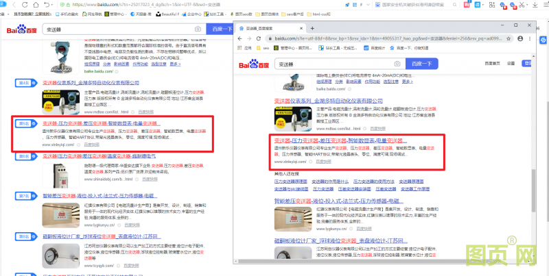 接下來(lái)我們?cè)趦蓚€(gè)瀏覽器上搜索同一個(gè)關(guān)鍵詞“變送器”,然后看看展現(xiàn)出來(lái)的結(jié)果,我們對(duì)比一下!