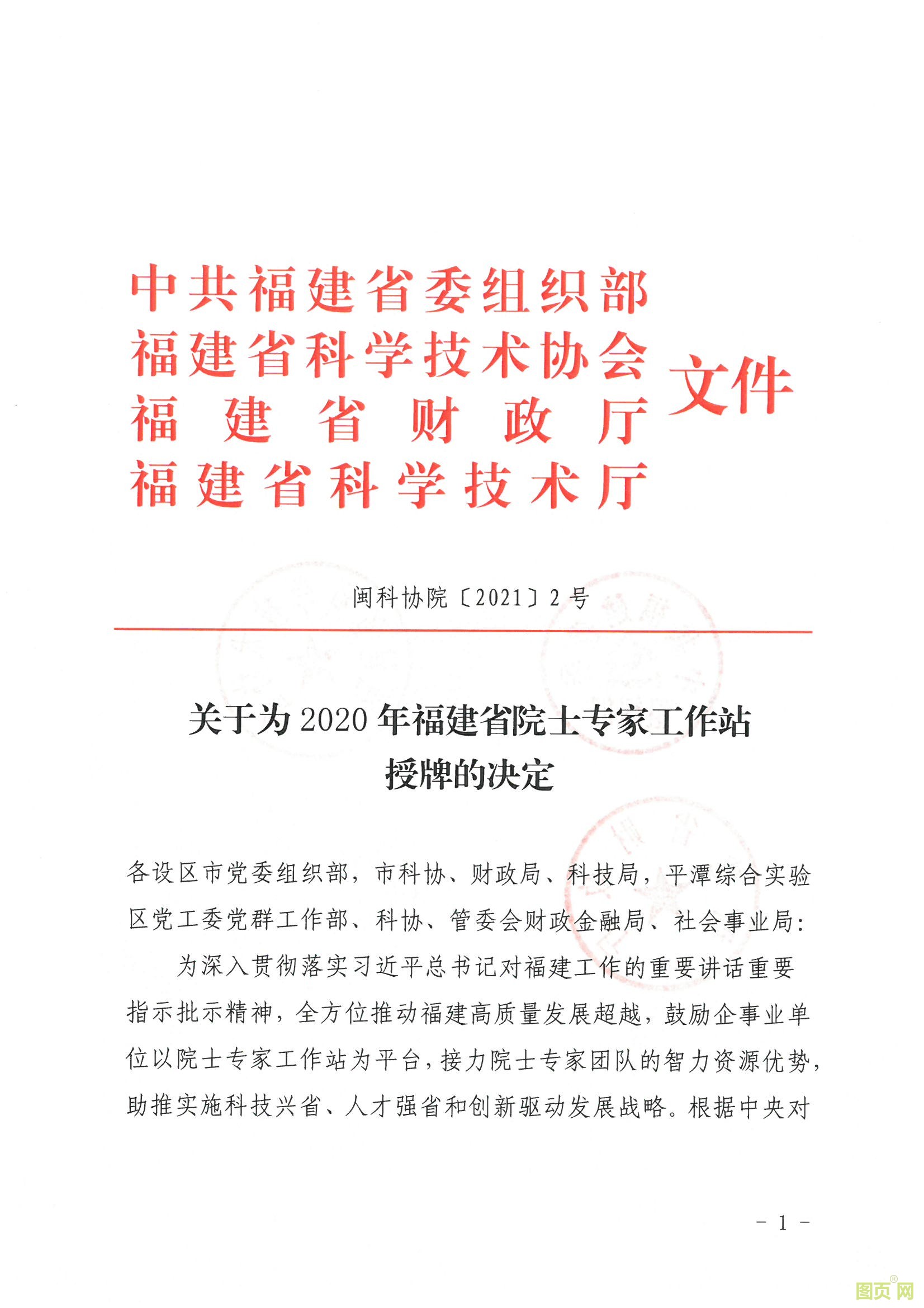 近日,中共福建省省委組織部、福建省科學(xué)技術(shù)協(xié)會(huì)、福建省財(cái)政廳、福建省科學(xué)技術(shù)廳聯(lián)合頒發(fā)了閩科協(xié)院[2021]2號(hào)《關(guān)于為2020年福建省院士專家工作站授牌的決定》文件,為全省22家院士專家工作站進(jìn)行再次授牌。虹潤院士專家工作站也榮膺此列,為南平地區(qū)唯一獲得再次授牌的院士專家工作站。