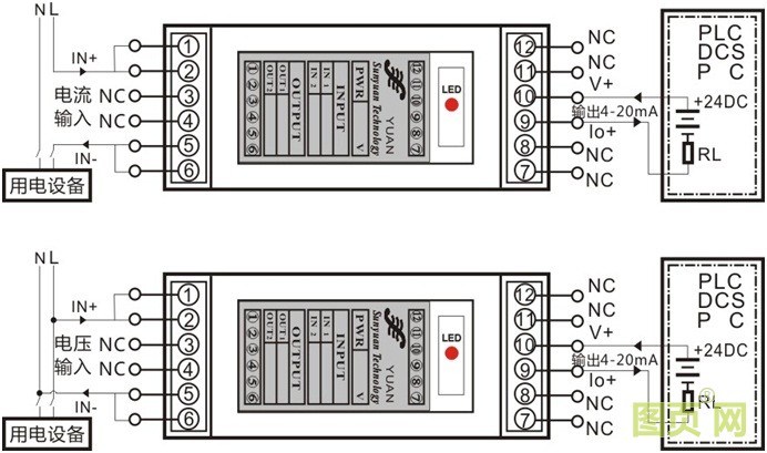 方案1:無(wú)源型直流單雙向電壓電流、電子尺位移電阻信號(hào)轉(zhuǎn)兩線制電流信號(hào)隔離變送器選擇方案