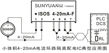 ISO 4-20mA-F(SIP12 Pin)和ISOS 4-20mA-F (SIP7 Pin封裝)的4-20mA電流環(huán)路信號(hào)隔離配電器,是一種兩線制回路供電的隔離模塊。通過(guò)后級(jí)饋電方式,給前級(jí)兩線制設(shè)備供電,并接收來(lái)自兩線制設(shè)備輸出的4-20mA 電流信號(hào),經(jīng)模塊隔離后輸出 4-20mA 的電流信號(hào)給傳感器工作。本方案采用獨(dú)有的電磁隔離模式及高效能后級(jí)饋電技術(shù),有效地解決了電流信號(hào)隔離對(duì)供電電源的依賴問(wèn)題,實(shí)現(xiàn)標(biāo)準(zhǔn)信號(hào) 4~20mA 精準(zhǔn)隔離傳送,可與各種儀表的兩線制回路供電模擬量輸入端口(如 PLC、DCS 系統(tǒng)等)相匹配。