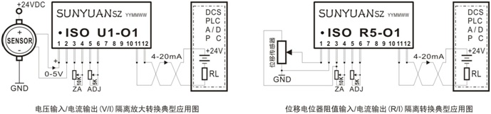 技術(shù)方案中的核心器件:無(wú)源型位移電阻信號(hào)(ISO R-O)、模擬電壓信號(hào)(ISO U-O)、電流信號(hào)(ISO A-O)變送器設(shè)計(jì)為高精度、小體積的標(biāo)準(zhǔn)SIP12 Pin 阻燃IC封裝,其采用獨(dú)有的磁電隔離耦合方式及高效能后級(jí)饋電技術(shù),可實(shí)現(xiàn)直流電壓、電流、單雙向信號(hào)及角位移、電子尺、電位器等模擬信號(hào)到兩線制回路饋電電流環(huán)信號(hào)的精準(zhǔn)隔離轉(zhuǎn)換,同各種類型的儀器儀表標(biāo)準(zhǔn)模擬量輸入端口(如PLC、DCS、FCS)相匹配。方案核心產(chǎn)品有小體積IC封裝的PCB板上安裝方式和DIN35標(biāo)準(zhǔn)導(dǎo)軌安裝方式,DIN導(dǎo)軌式安裝方式可為工業(yè)現(xiàn)場(chǎng)實(shí)現(xiàn)信號(hào)一進(jìn)一出、一進(jìn)二出、一進(jìn)三出、二進(jìn)二出,四路、八路、十六路信號(hào)的隔離轉(zhuǎn)換功能,用戶可根據(jù)現(xiàn)場(chǎng)需要選擇技術(shù)方案。