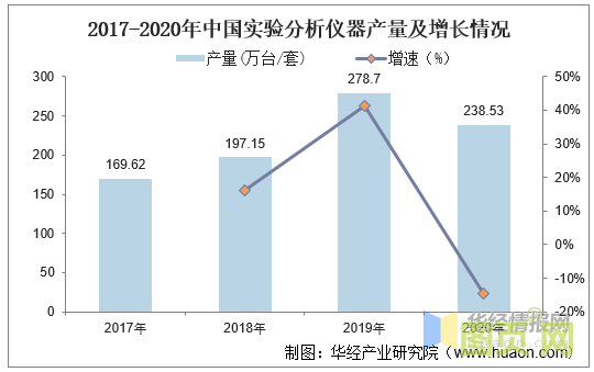 2017-2020年中國實驗分析儀器產(chǎn)量及增長情況