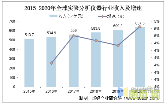 2015-2020年全球?qū)嶒灧治鰞x器行業(yè)收入及增速