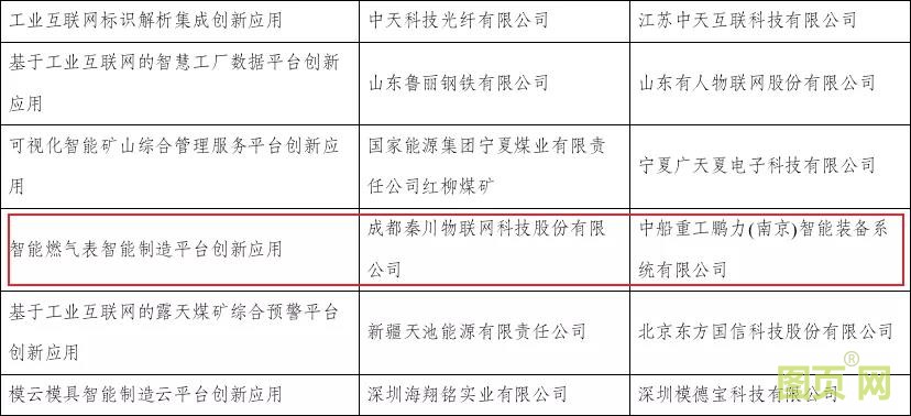 近日,中華人民共和國工業(yè)和信息化部公布2021年工業(yè)互聯(lián)網(wǎng)平臺創(chuàng)新領(lǐng)航應(yīng)用案例入圍名單,成都秦川物聯(lián)網(wǎng)科技股份有限公司“智能燃?xì)獗碇悄苤圃炱脚_創(chuàng)新應(yīng)用”項(xiàng)目入選2021年工業(yè)互聯(lián)網(wǎng)平臺創(chuàng)新領(lǐng)航應(yīng)用案例智能化制造方向。