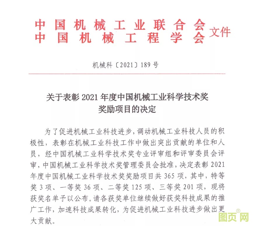 中國機械工業(yè)科學(xué)技術(shù)獎是根據(jù)《國家科學(xué)技術(shù)獎勵條例》和《社會力量設(shè)立科學(xué)技術(shù)獎管理辦法》的有關(guān)規(guī)定,由中國機械工業(yè)聯(lián)合會和中國機械工程學(xué)會共同設(shè)立并經(jīng)國家科學(xué)技術(shù)部批準(zhǔn),在國家科技獎勵主管部門登記的面向全國機械行業(yè)的綜合性科技獎項。中國機械工業(yè)科學(xué)技術(shù)獎是全國性的機械工業(yè)綜合性科技獎項,也是機械工業(yè)申報國家科技進步獎的主要渠道。