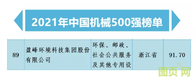 近日,2021年(第十九屆)中國(guó)機(jī)械500強(qiáng)研究報(bào)告發(fā)布會(huì)在北京舉行。會(huì)議上公布了中國(guó)機(jī)械500強(qiáng)企業(yè)名單,盈峰環(huán)境榜上有名,位列第89位,充分彰顯出公司強(qiáng)大的綜合實(shí)力和行業(yè)影響力。