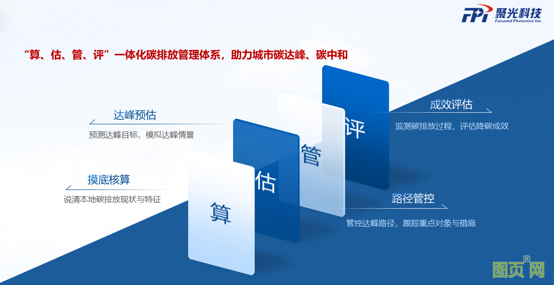 在雙碳目標背景下,聚光科技緊隨國家目標要求,積極響應需求變化,全面考慮地方政府及園區(qū)企業(yè)在減碳行動中的需求及可能遇到的問題,以科技手段助攻,并在碳監(jiān)測的基礎上推出了“數(shù)智雙碳綜合解決方案”。該方案依托“碳排放核算及清單編制業(yè)務板塊、數(shù)智雙碳管控平臺板塊、地天空一體的監(jiān)測體系板塊”三個板塊,通過“算、估、管、評”四步走,助力當?shù)卣▓@區(qū)及企業(yè))實現(xiàn)碳達峰。
