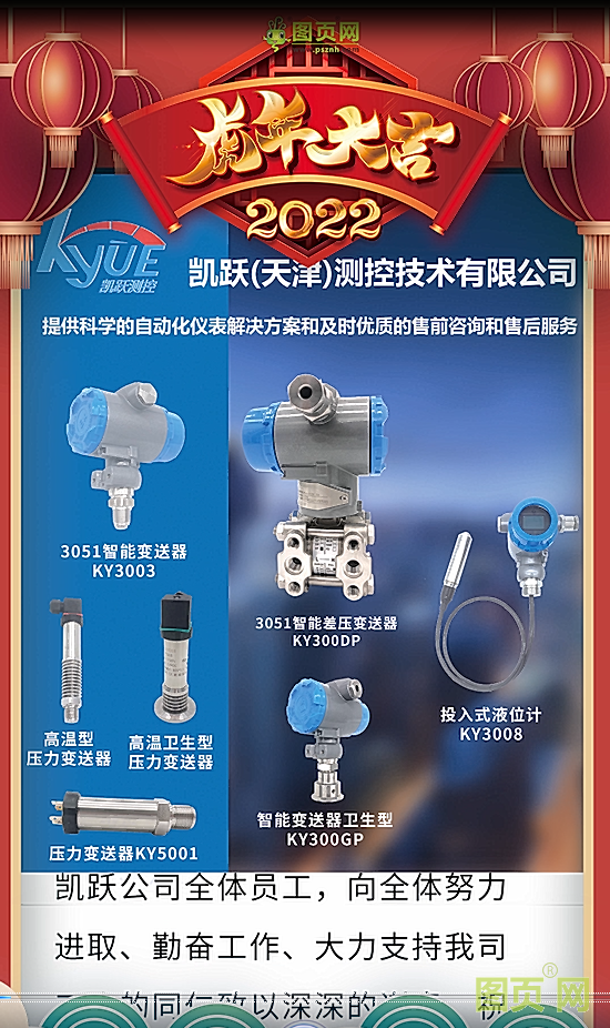 律回春暉近,萬(wàn)象始更新。告別有特殊意義的2021,迎來(lái)充滿希望的2022。值此新春到來(lái)之際,凱躍公司全體員工,向全體努力進(jìn)取、勤奮工作、大力支持我司工作的同仁致以深深的謝意,祝大家在新的一年里和氣致祥、身體健康、萬(wàn)事如意!
