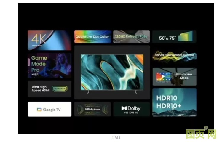 另一款Mini LED產(chǎn)品U8H,包含55/65/75英寸三個尺寸,擁有4K分辨率,120Hz刷新率,亮度可達1500nits,產(chǎn)品將在2022年第二季度中期上市,售價1099美元起。