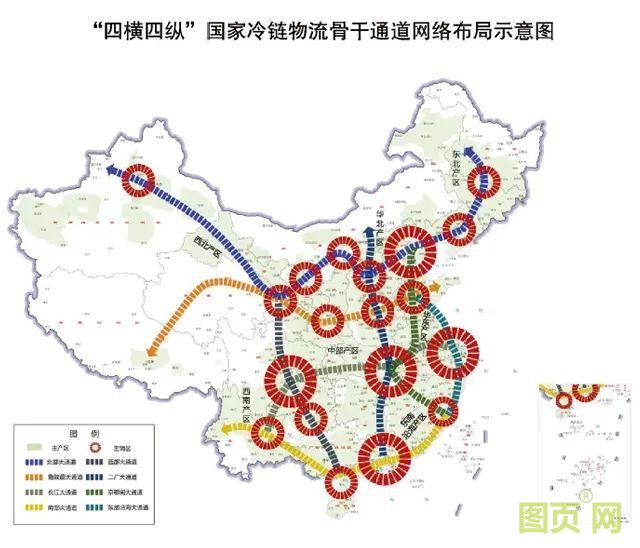 “四橫”是指北部、魯陜藏、長江、南部四大通道;“四縱”則是西部、二廣、京鄂閩、東部沿海四大通道。我國將通過“四橫四縱”串接農(nóng)產(chǎn)品主產(chǎn)區(qū)和19個城市群,形成內(nèi)外聯(lián)通的國家冷鏈物流骨干通道網(wǎng)絡(luò)。除了骨干通道外,我國還將打造冷鏈物流運行體系,加強產(chǎn)銷冷鏈集配中心建設(shè),構(gòu)建服務(wù)國內(nèi)產(chǎn)銷、國際進出口的兩大冷鏈物流系統(tǒng),推進干支線物流和兩端配送協(xié)同運作,建設(shè)國內(nèi)國際一體化冷鏈物流網(wǎng)絡(luò)。同時,我國還將建立一批產(chǎn)銷冷鏈集配中心。在產(chǎn)地,建設(shè)一批產(chǎn)地冷鏈集配中心,推廣“移動冷庫+集配中心(物流園區(qū))”等新模式,提高產(chǎn)地冷鏈設(shè)施利用效率和農(nóng)產(chǎn)品產(chǎn)后商品化處理水平。在城市,建設(shè)一批銷地冷鏈集配中心,集成整合流通加工、區(qū)域分撥、城市配送等功能,密切與存量冷鏈設(shè)施業(yè)務(wù)聯(lián)系,引導(dǎo)存量冷鏈設(shè)施資源集中,優(yōu)化城市冷鏈設(shè)施布局。通過產(chǎn)銷冷鏈集配中心建設(shè),形成“分散”到“集中”再到“分散”的冷鏈物流組織模式,有效擴大冷鏈物流服務(wù)網(wǎng)絡(luò)覆蓋面。