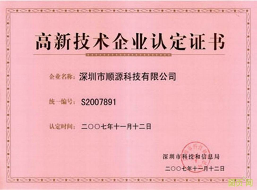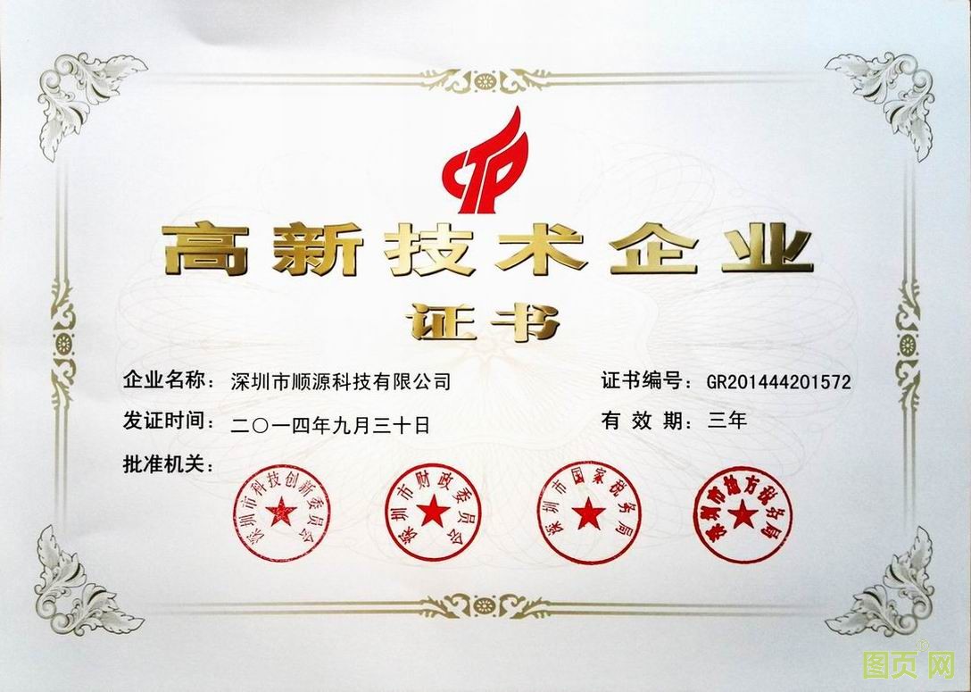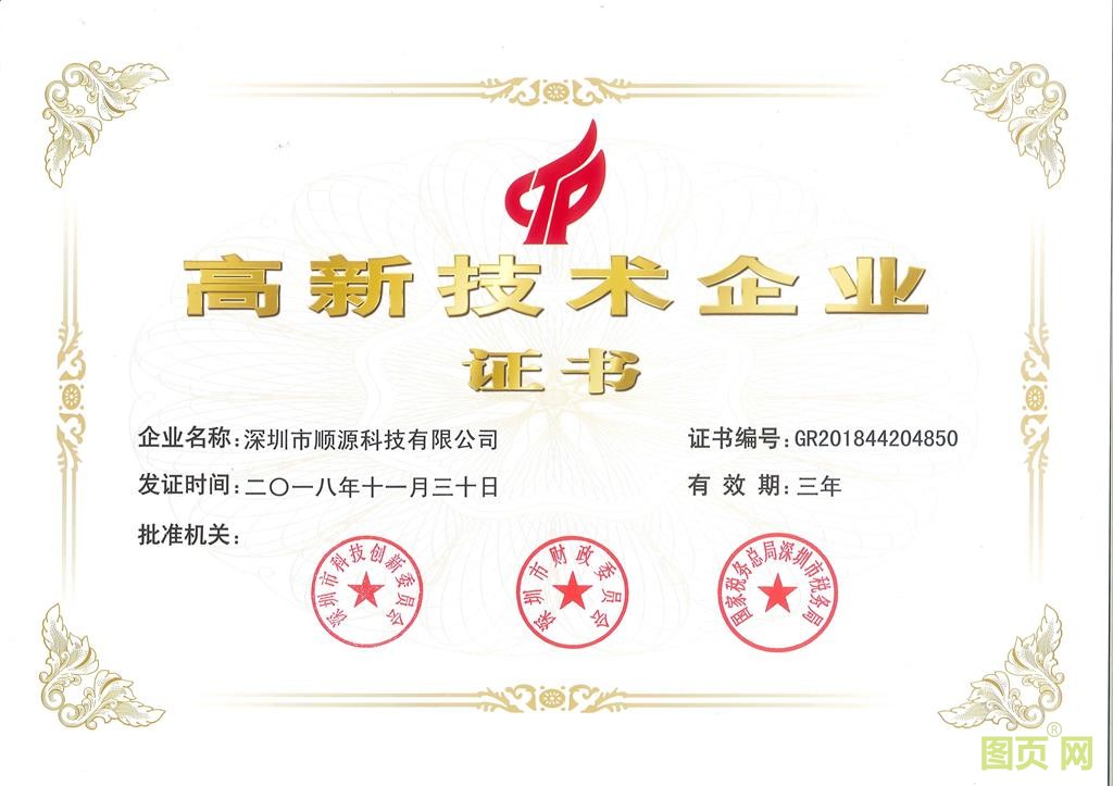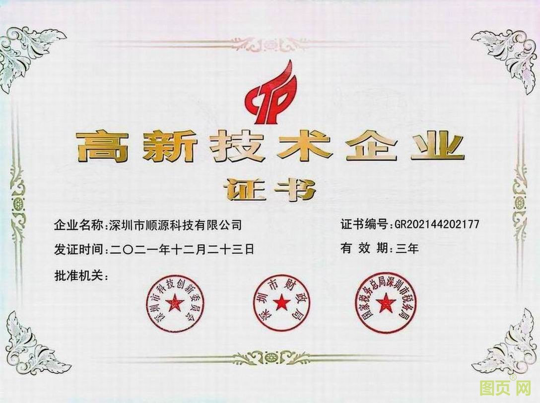 順源科技高新技術(shù)企業(yè)證書(shū)展示